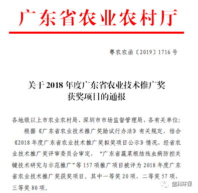 我司作為華南農(nóng)業(yè)大學(xué)合作單位之一,參與“修復(fù)農(nóng)田土壤污染的能源作物品種篩選及其配套技術(shù)應(yīng)用項(xiàng)目”取得了良好的綜合效益,根據(jù)《廣東省農(nóng)業(yè)技術(shù)推廣獎(jiǎng)勵(lì)試行辦法》有關(guān)規(guī)定,經(jīng)省農(nóng)業(yè)技術(shù)推廣獎(jiǎng)評審委員會(huì)審定,該項(xiàng)目獲得2018年度廣東省農(nóng)業(yè)技術(shù)推廣二等獎(jiǎng)(粵農(nóng)農(nóng)函〔2019〕1716 號)。